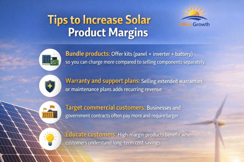 1. Bundle products: Offer kits (panel + inverter + battery) so you can charge more compared to selling components separately.