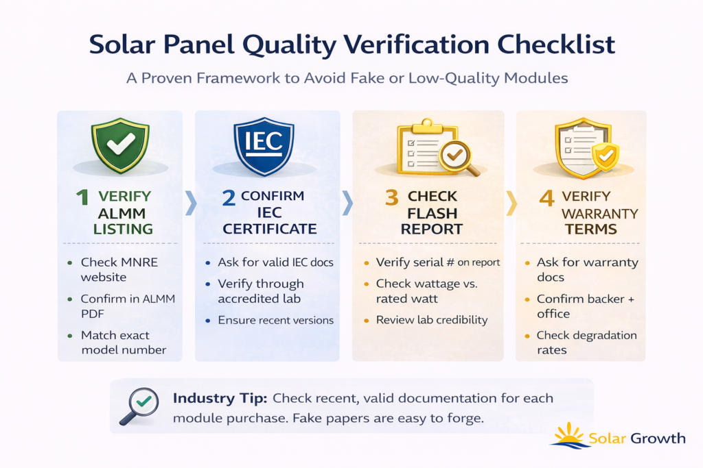 To avoid fake solar panels in India, you need structured verification — not assumptions.