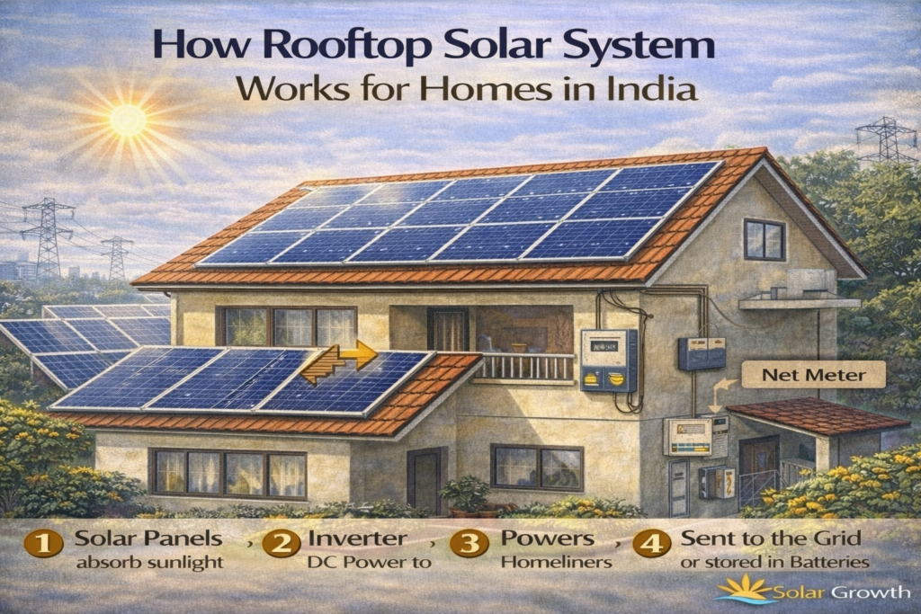 This beginner guide explains how rooftop solar systems work for homes in India, including installation process, costs, subsidies, and key factors homeowners should consider.