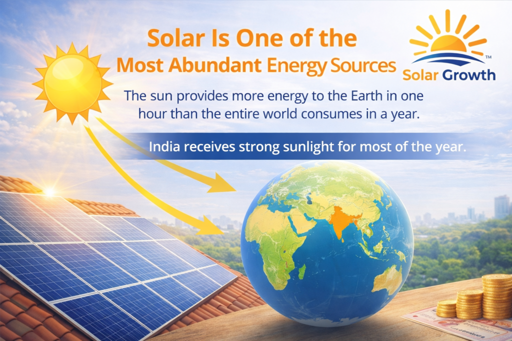 The sun provides more energy to the Earth in one hour than the entire world consumes in a year. India, in particular, receives strong sunlight for most of the year, making it one of the most favorable regions for solar energy generation.